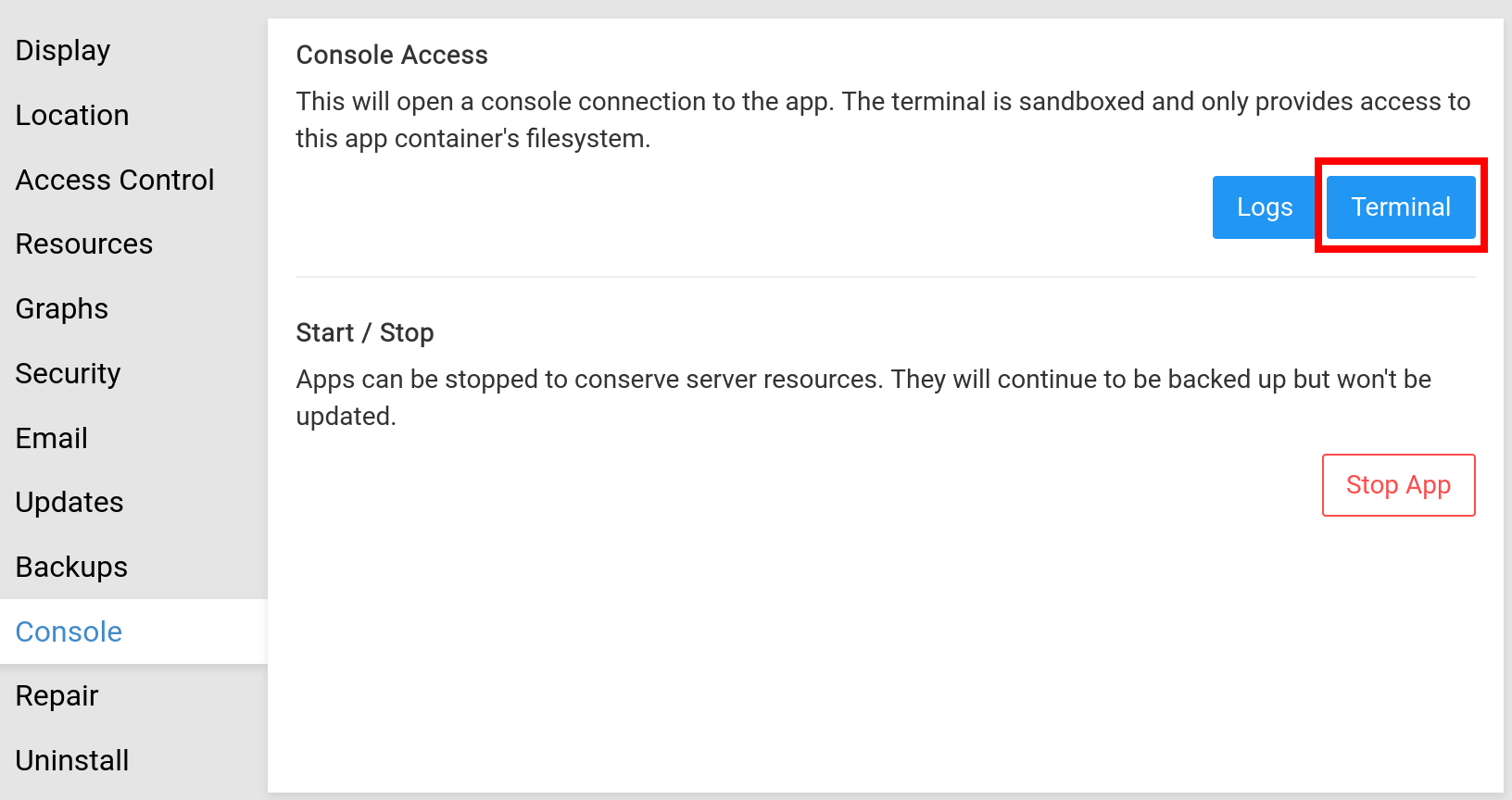 - Open a Web Terminal by using the Terminal button in the