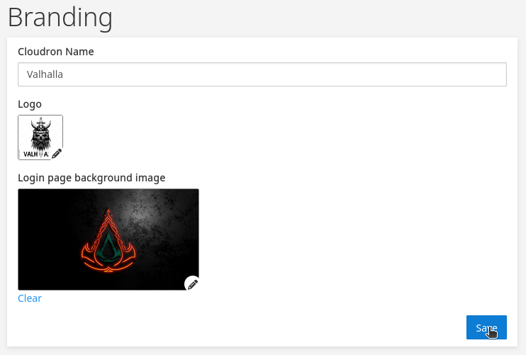 it's name, logo and footer. The Branding view is only accessible by a Cloudron superadmin.