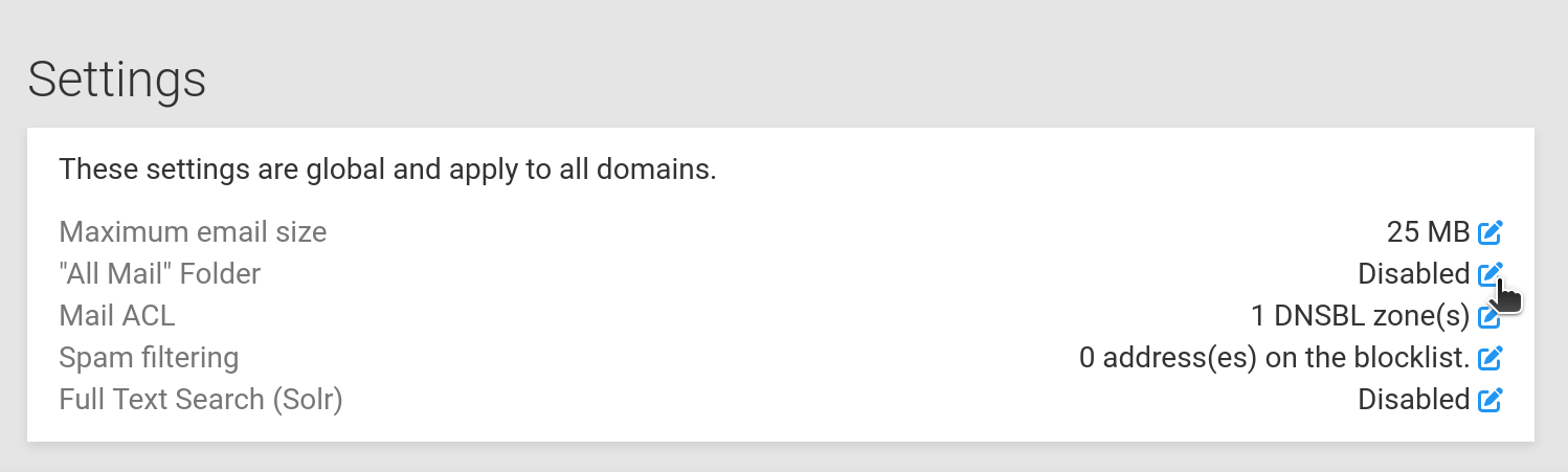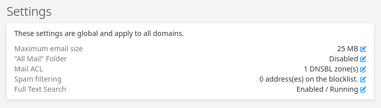 When Cloudron Email is enabled, it becomes a full-fledged mail server solution.