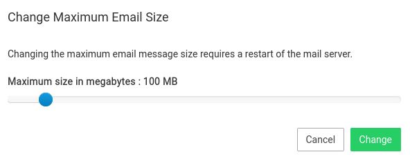 Cloudron will automatically setup the required DNS records for all the domains when you change the mail server location. Any installed webmail clients will be automatically re-configured as well. Be sure to adjust the settings of any mobile and desktop mail clients accordingly.