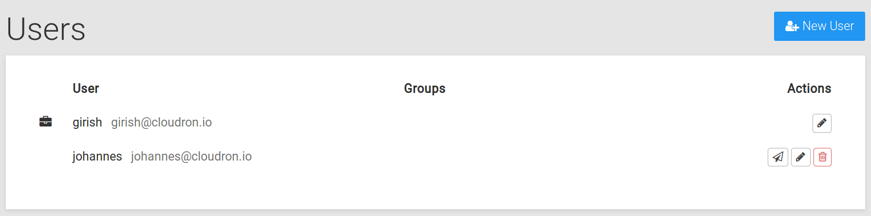 When Cloudron user directory integration is available for an app, the user management options will look like below: