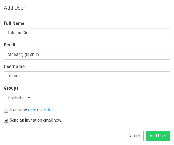When Cloudron user directory integration is unavailable for an app, the user management options look like below: