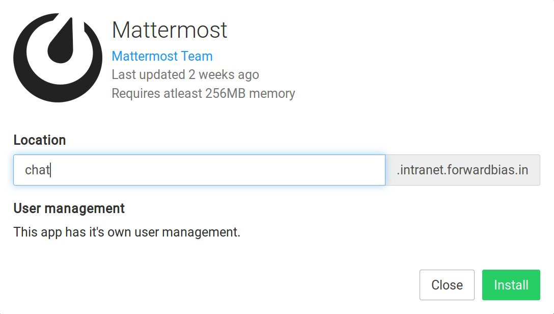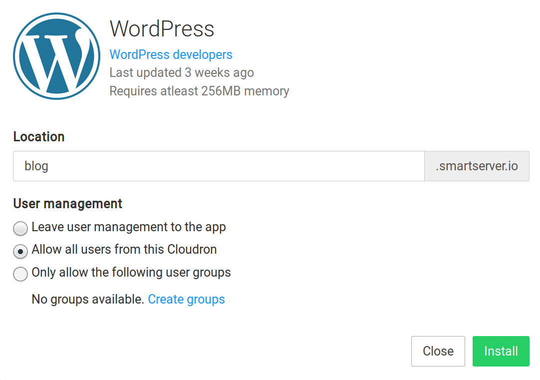 When installing an app, you can choose if the app is to be configured to use the Cloudron user directory. Disabling the integration can be beneficial when the app is meant to be used primarily by external users (for example, a community chat or a public forum).