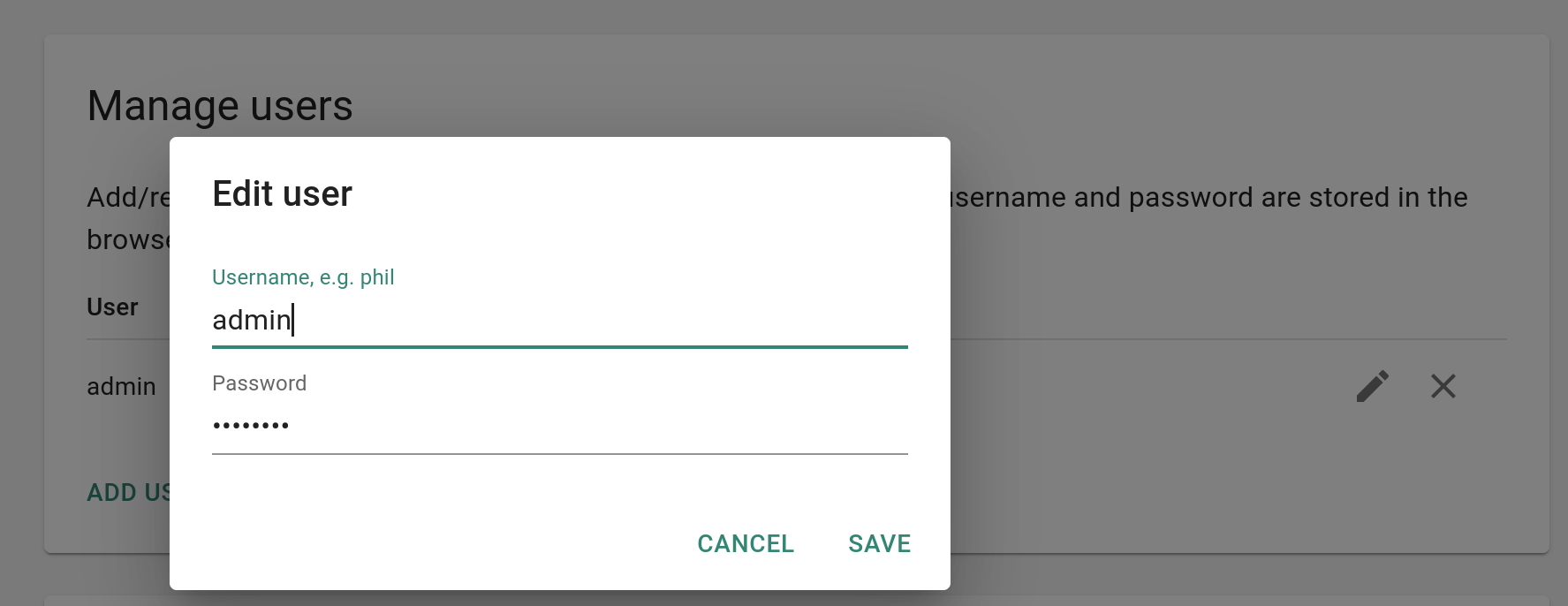 password in the frontend, you have to enter the above password in Settings -> Manage Users.